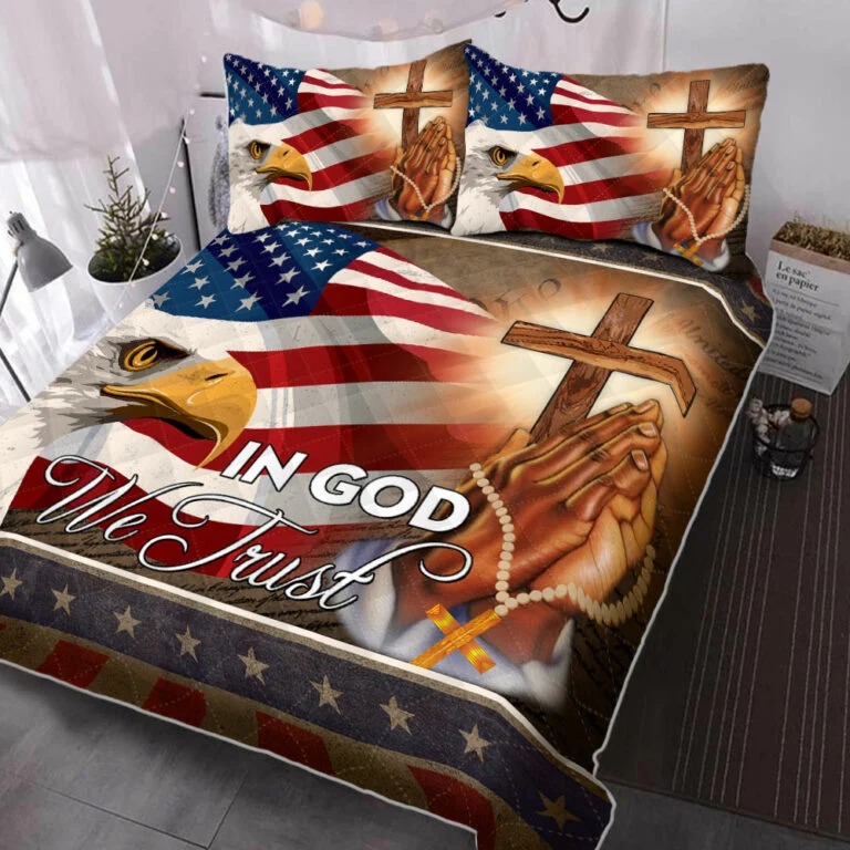 America Eagle In God We Trust Quilt Bedding Set