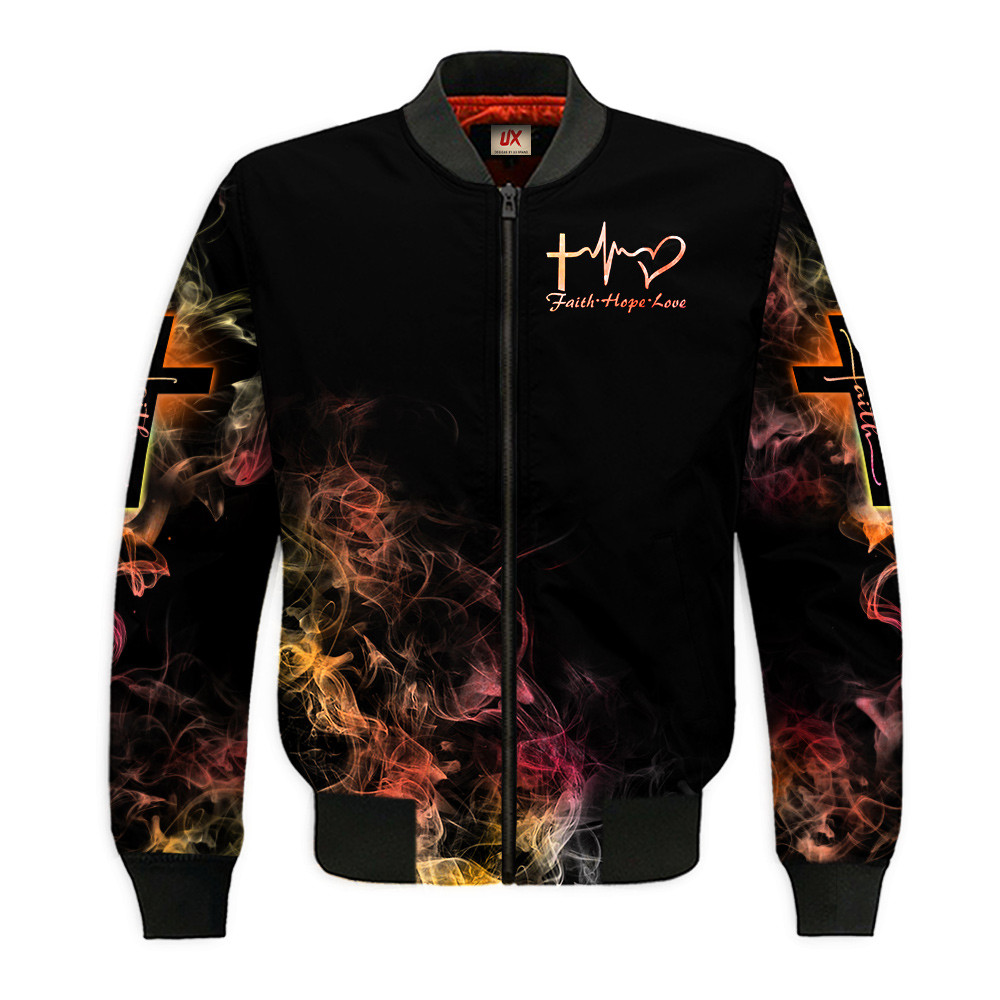 Carry your faith boldly with our Christian Bomber Jacket, designed to keep you warm while sharing a message of hope and devotion to Jesus. Built with a multilayer construction, the jacket features a durable nylon shell that blocks cold winds and light rain, a soft polyester lining, and a mid-layer of padded cotton for dependable warmth without unnecessary bulk.