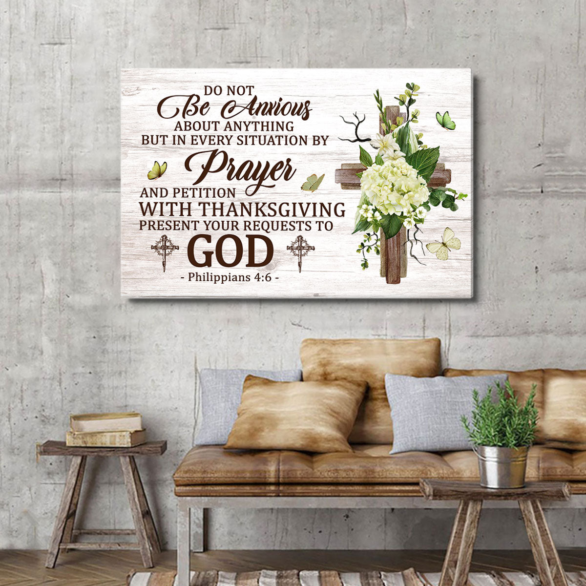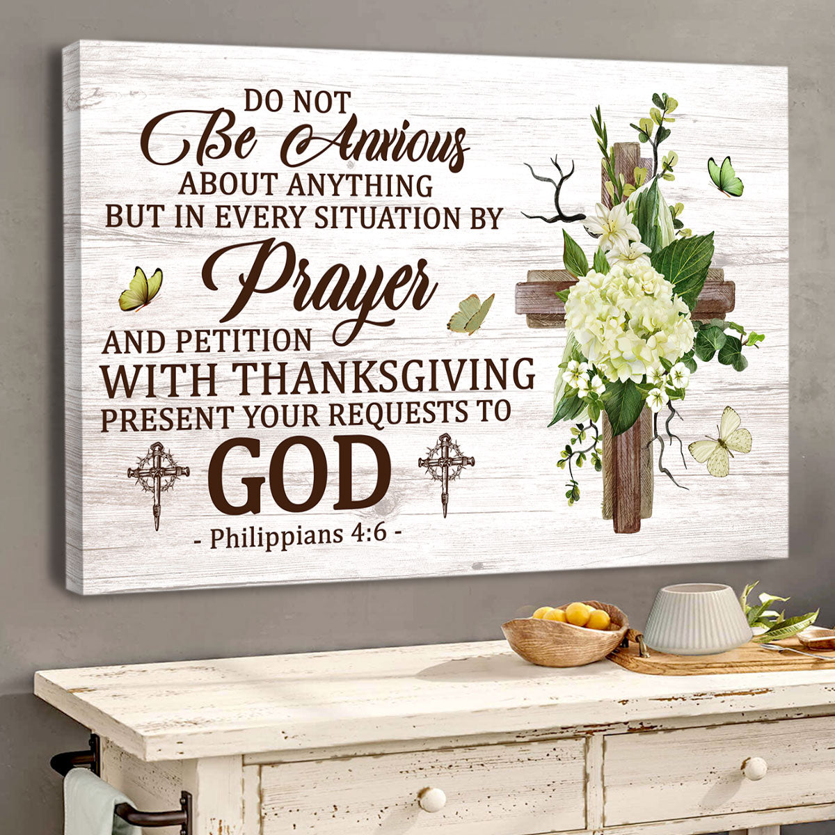 Jesuspirit Beautiful Canvas Flower And Cross Philippians 46 Do Not Be Anxious CVM1