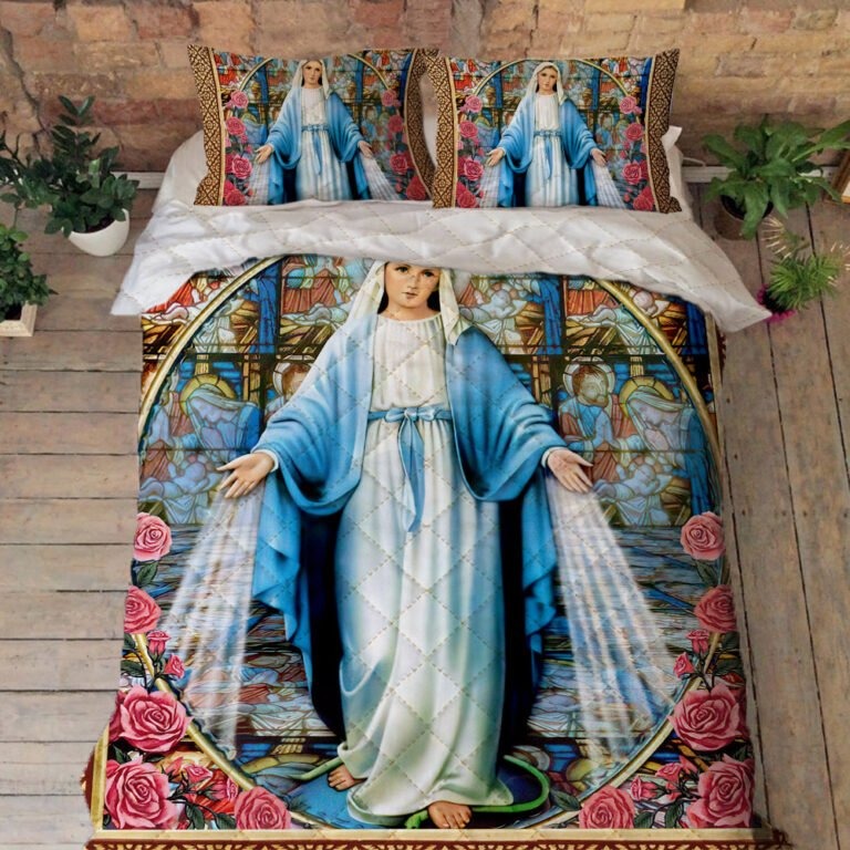 Mother Mary Bedding Jesus God Mother Mary Roses Quilt Bedding Set