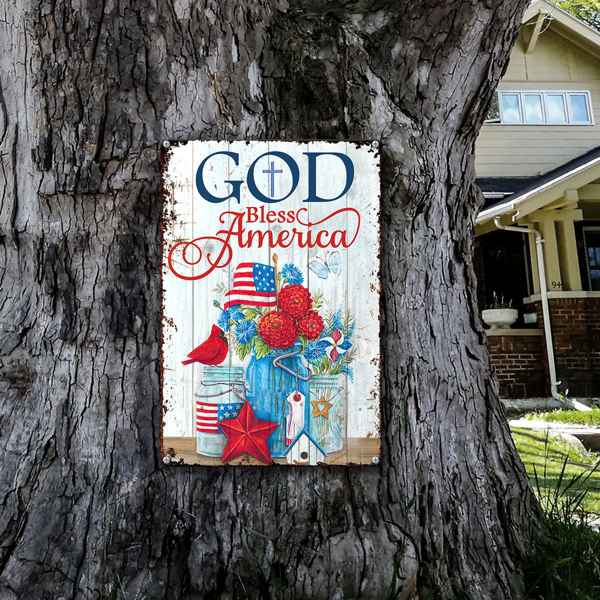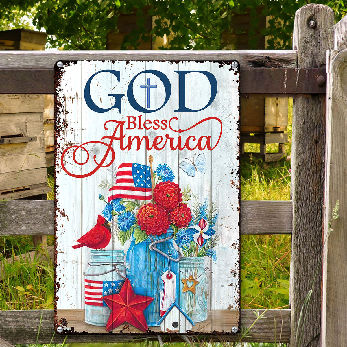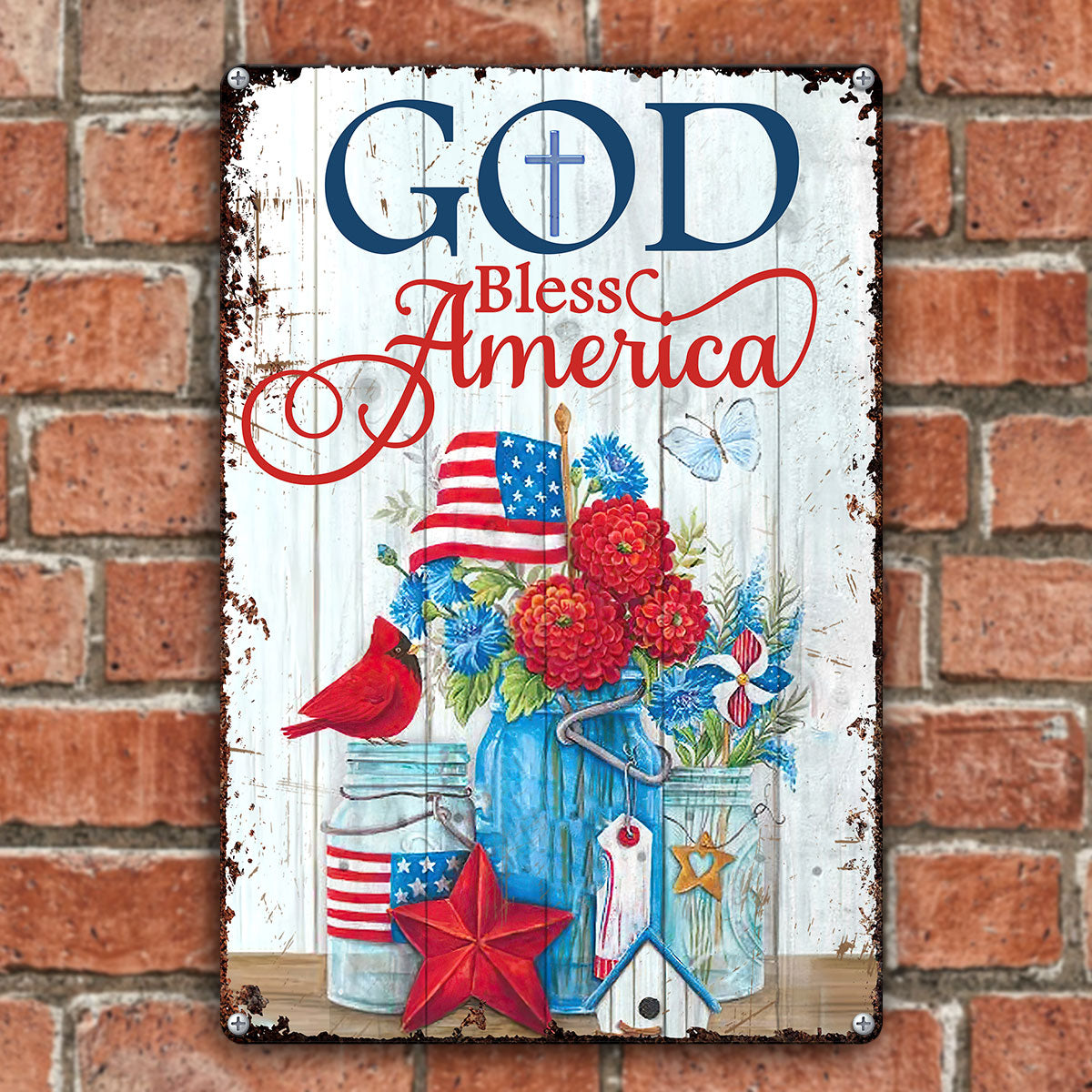 UX Jesus  Lovely Metal Sign  Flower  Cardinal  God Bless America NUM472