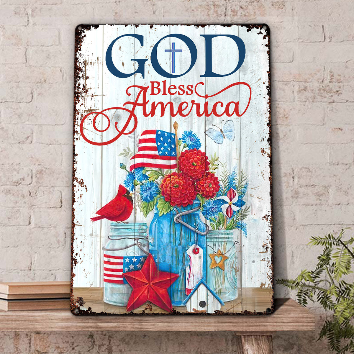 Be the first to review “UX Jesus Lovely Metal Sign Flower Cardinal God Bless America NUM472”